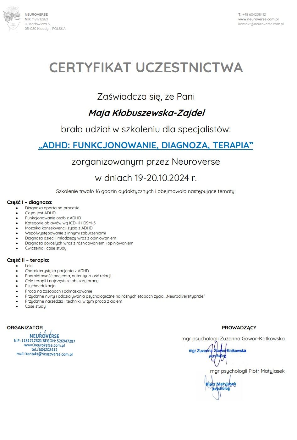 Gdzie Maja Kłobuszewska-Zajdel ma swój gabinet?Maja Kłobuszewska-Zajdel przyjmuje pod adresem:
