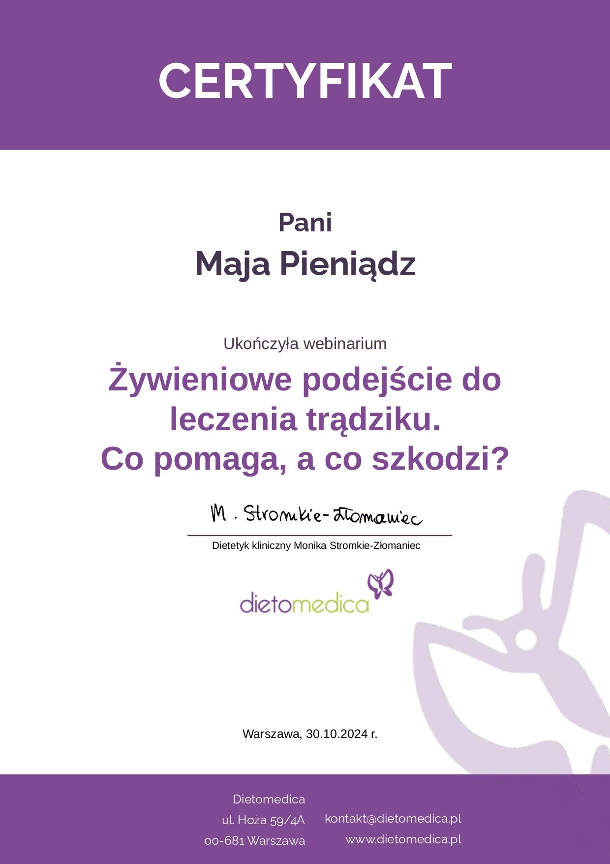 uprzejmie informuję, że w ramach pakietu dietetycznego rozszerzonego, oferuję konsultacje dietetyczno-fitoterapeutyczne, które łączą indywidualne zalecenia żywieniowe z elementami fitoterapii, czyli wsparcia organizmu za pomocą odpowiednio dobranych preparatów roślinnych.