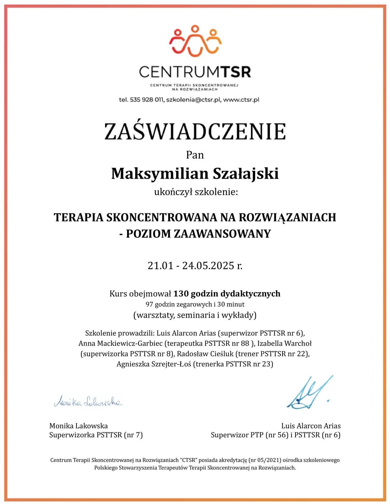 Ukończyłem psychologię na Uniwersytecie Warszawskim oraz kursy z Terapii Skoncentrowanej na Rozwiązaniach (TSR I i TSR II oraz Kids' Skills).