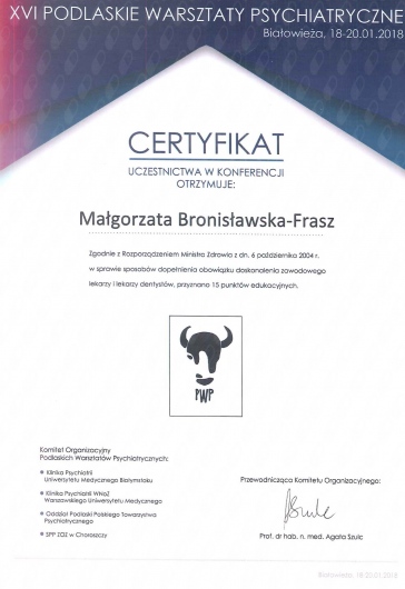 Wizyta miała miejsce w Wojewódzka Przychodnia Zdrowia Psychicznego w Bydgoszczy.