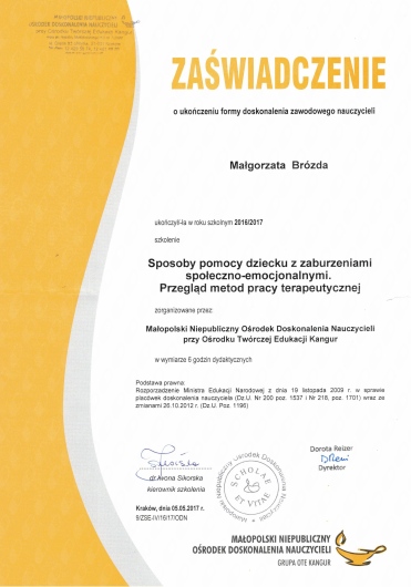Przemiła, profesjonalna, przystępna, sympatyczna osoba. Już na pierwszej wizycie córka poczuła się u Pani Małgosi bezpiecznie i od razu była w stanie nawiązać kontakt bez którego wizyta u psychologa nie ma najmniejszego sensu. Polecam z całego serca.