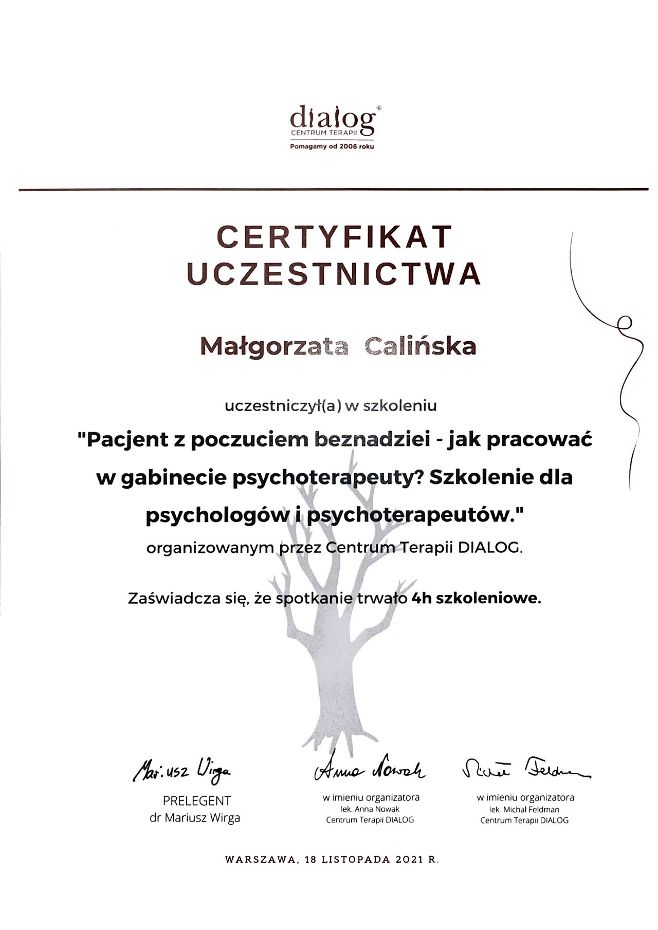 Małgorzata Calińska: co mówią pacjenci?3 osób dodało swoją opinię. Małgorzata Calińska ma średnią ocen 5 (na 5 gwiazdek).