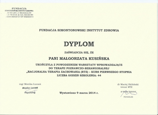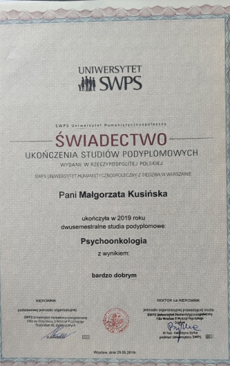 Siedząc na żółtym fotelu u Pani Małgorzaty czuję,że jestem u właściwej osoby,która jest nie tylko świetnym specjalistą ale przede wszystkim kimś kto daje nadzieję na powrót do życia w spokoju.Polecam wszystkim, którzy z jakichś powodów przestali cieszyć się życiem i chcą to zmienić.Mam nadzieję,że z jej pomocą to mi się uda.