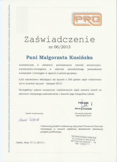 Dzięki pomocy p. Małgorzaty udało mi się zrozumieć swoje uczucia i uczucia osób w moim otoczeniu, wyznaczać granice i przejść trudny czas w moim życiu.