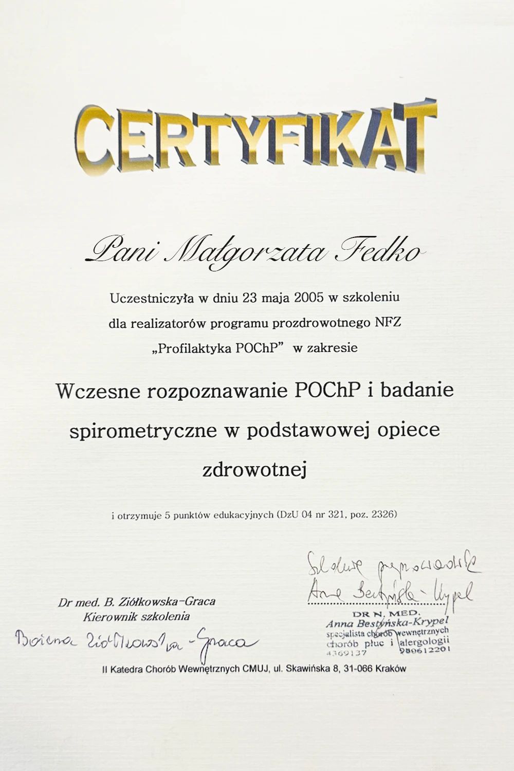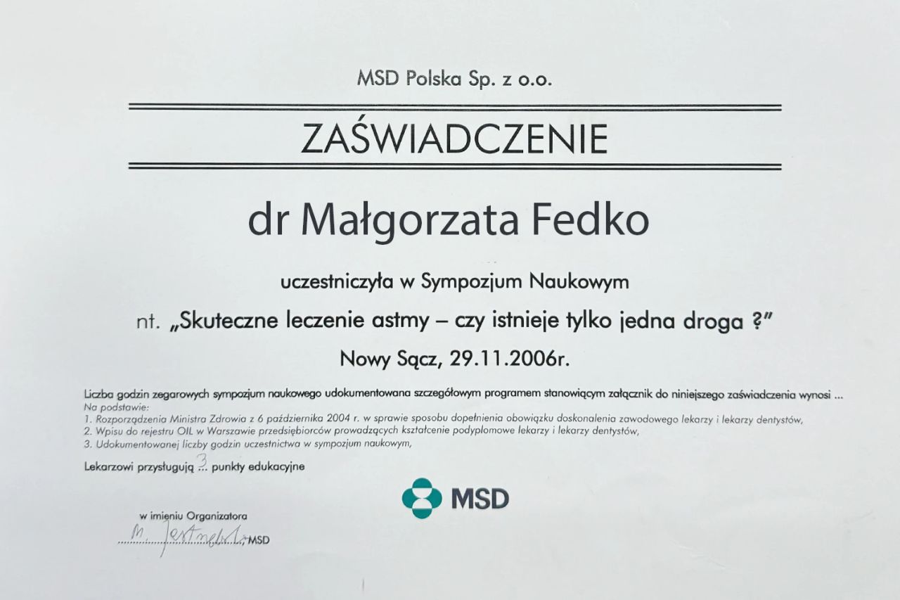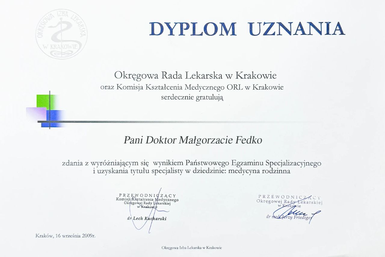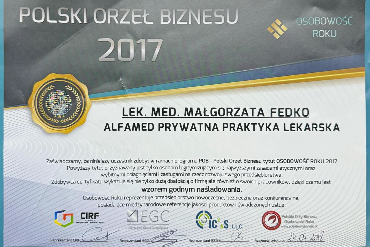 Lek. med. Małgorzata Fedko wyróżnia się na tle innych specjalistów dzięki zdobytym wyróżnieniom i nagrodom. Jest laureatką prestiżowego plebiscytu „Hipokrates” – w 2023 roku zdobyła tytuł Lekarza Rodzinnego Roku w Małopolsce, zajmując pierwsze miejsce, a także trzecie miejsce w skali kraju. W 2024 roku ponownie zdobyła pierwsze miejsce w Nowym Sączu, co potwierdza jej wysoki poziom zaufania pacjentów. Kolejnym atutem jest jej holistyczne podejście do pacjentów, które łączy tradycyjne metody leczenia z nowoczesnymi technologiami. Dzięki temu każda osoba jest traktowana indywidualnie, z uwzględnieniem wszystkich aspektów zdrowia. Ponadto, jej ponad 25-letnie doświadczenie w pracy w różnych placówkach medycznych, w tym w szpitalach, POZ oraz prywatnej praktyce, czyni ją wyjątkowo wszechstronną i kompetentną specjalistką.
