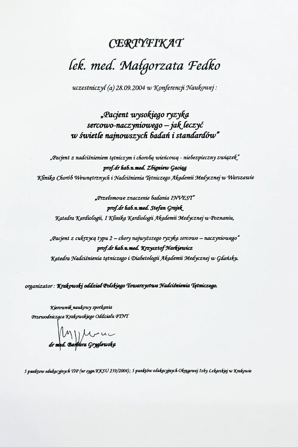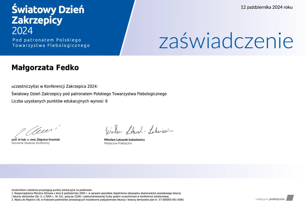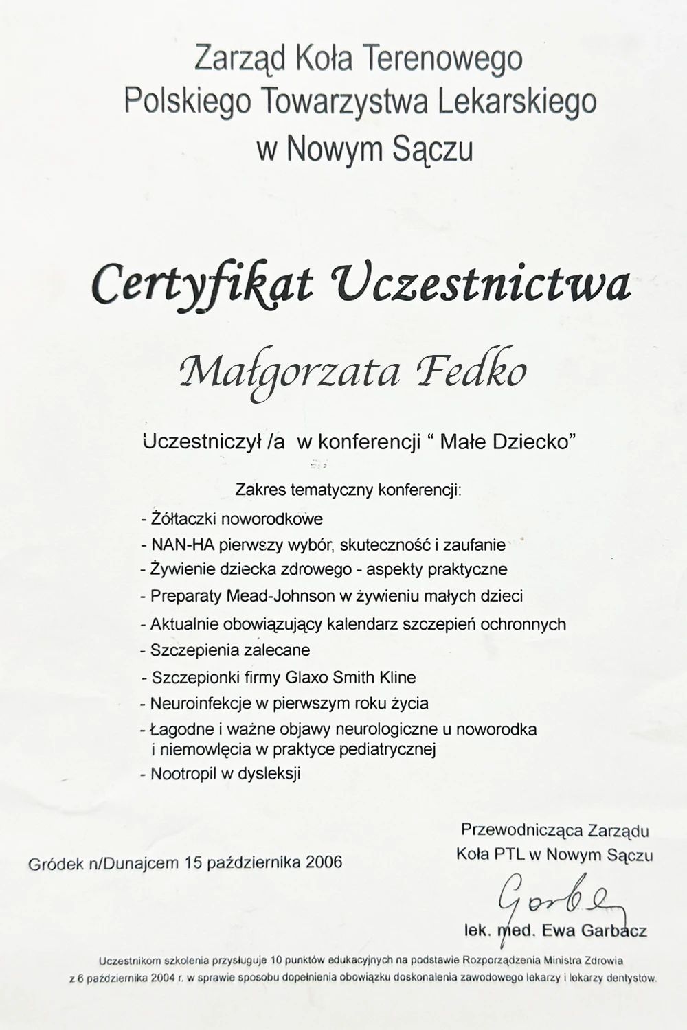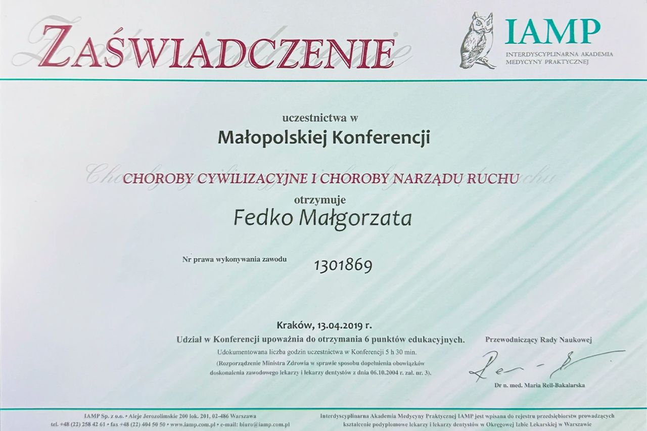 Czy Małgorzata Fedko przyjmuje online, bez konieczności pojawiania się w placówce?Tak, Małgorzata Fedko oferuje konsultacje online. Wybierz opcję „konsultacja online” przy umawianiu wizyty, a zobaczysz dostępne terminy.