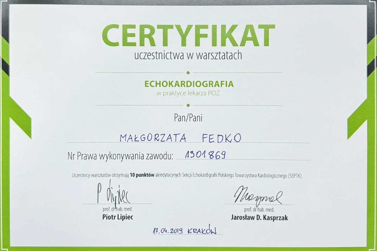 Centrum Medyczne MedVista, gdzie pracuje lek. med. Małgorzata Fedko, to nowoczesna placówka zdrowotna zlokalizowana w Nowym Sączu przy al. Stefana Batorego 81k. Gabinet jest wyposażony w nowoczesny sprzęt diagnostyczny, który pozwala na przeprowadzanie wielu badań, takich jak EKG, USG czy spirometria, co umożliwia kompleksową diagnostykę na miejscu. Zespół MedVista składa się z doświadczonych specjalistów, którzy regularnie podnoszą swoje kwalifikacje poprzez udział w szkoleniach i konferencjach medycznych. Wszyscy członkowie zespołu wyróżniają się empatią oraz profesjonalizmem, co sprawia, że pacjenci mogą czuć się komfortowo i bezpiecznie podczas wizyt.