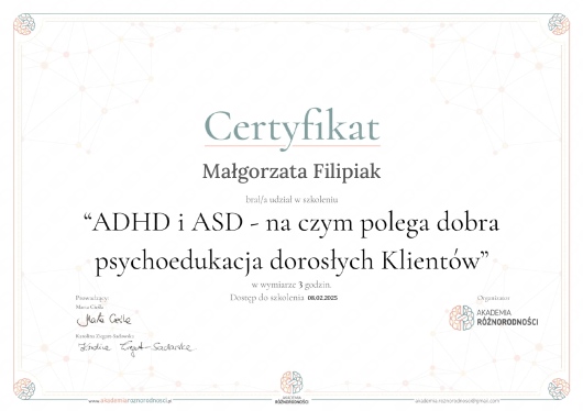 Polecam z całego serca - Pani Małgosia jest wyjątkowym psychoterapeutą.