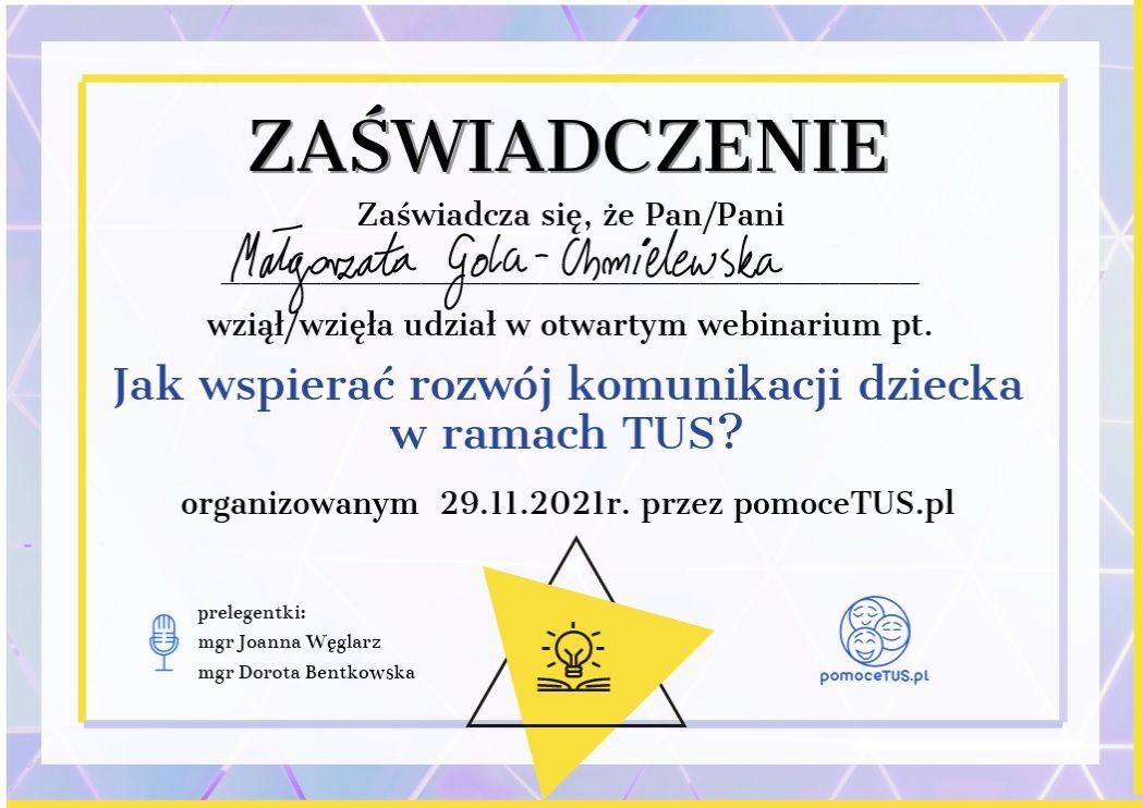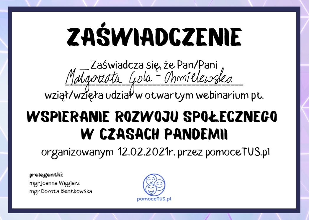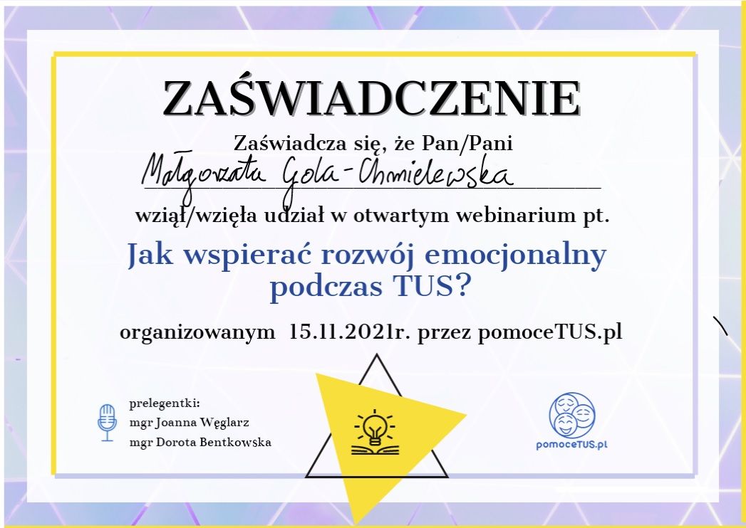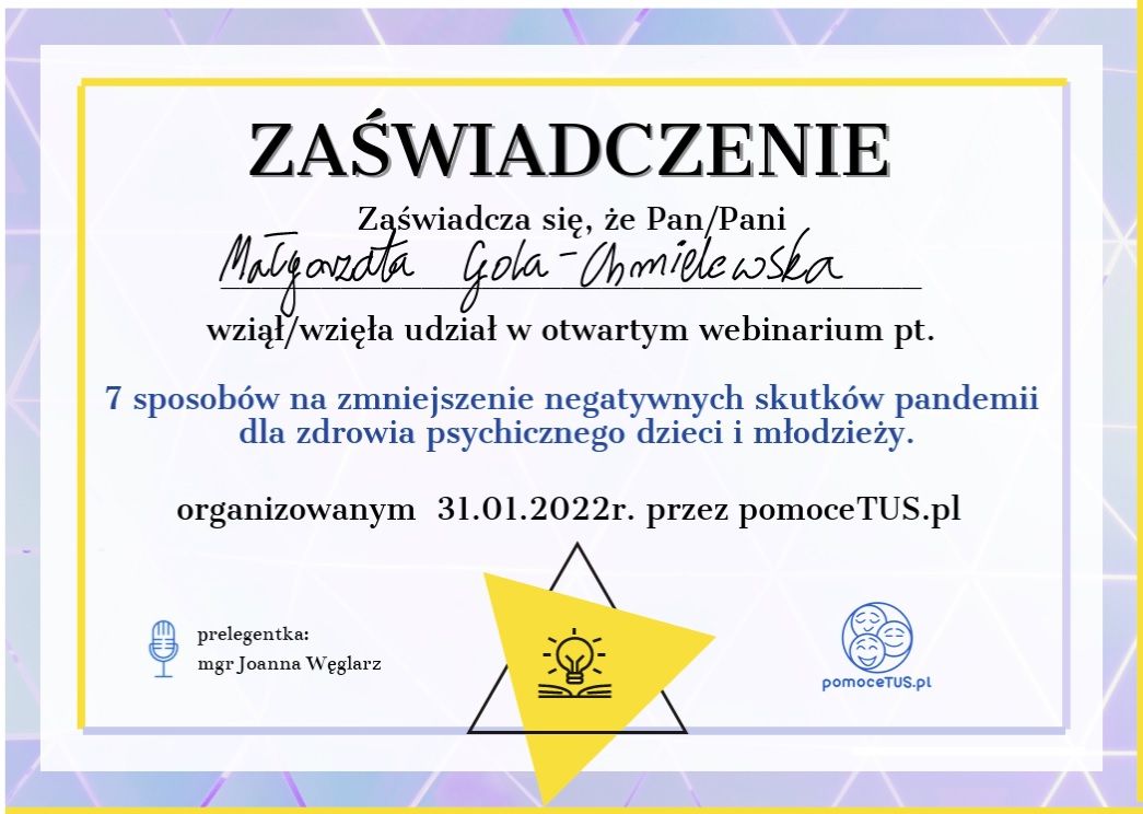 Bardzo ważne jest dla mnie poszerzanie wiedzy, w związku z tym mam za sobą wiele szkoleń, min.: