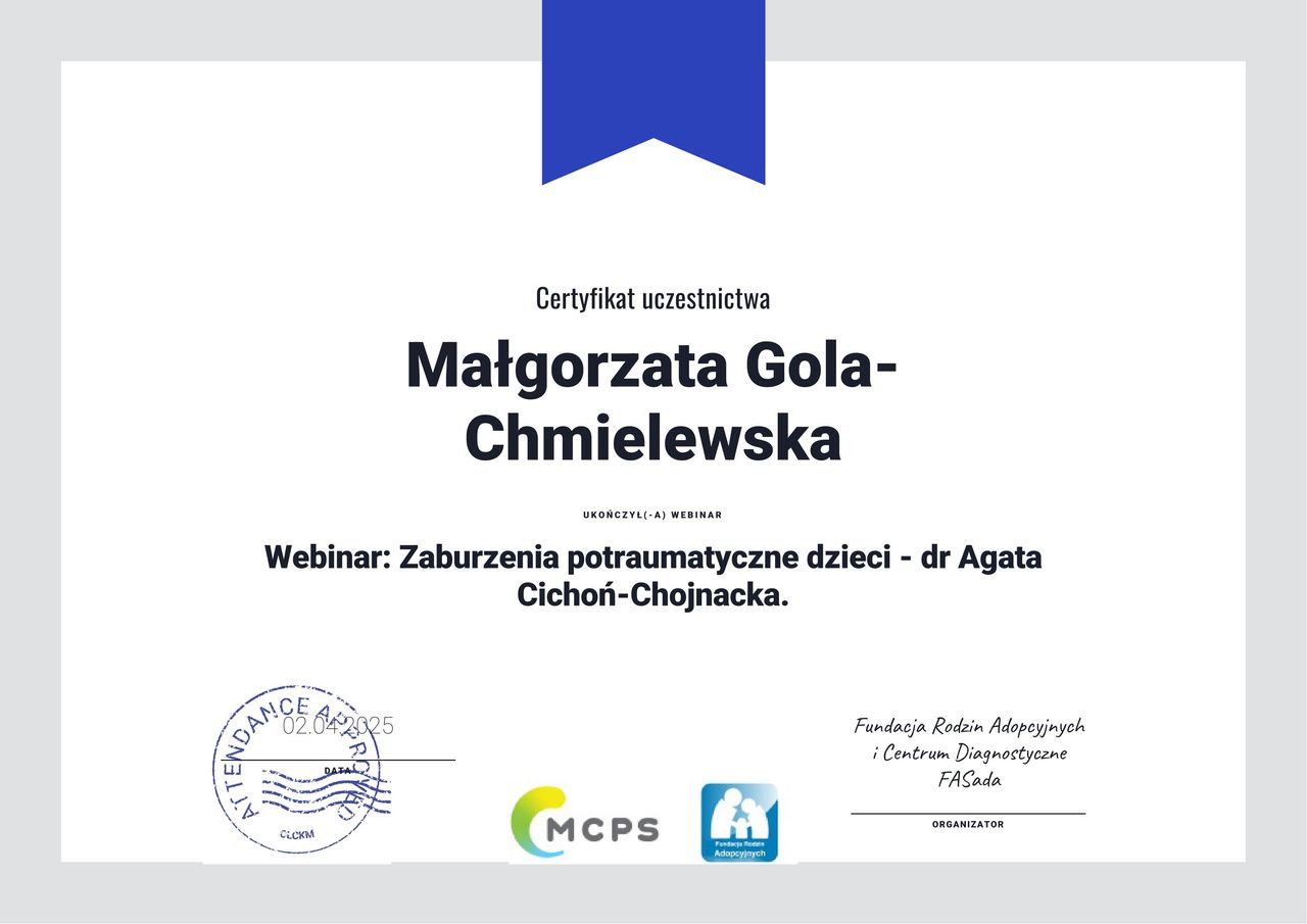 Małgorzata Gola-Chmielewska: co mówią pacjenci?25 osób dodało swoją opinię. Małgorzata Gola-Chmielewska ma średnią ocen 5 (na 5 gwiazdek).