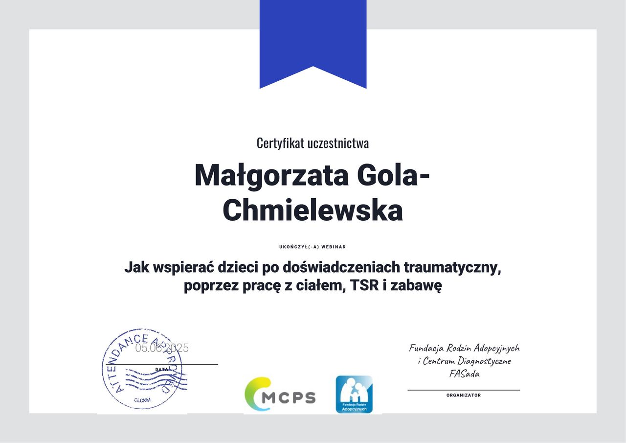 * Jak wspierać dzieci po doświadczeniach traumatycznych poprzez pracę z ciałem, TSR i zabawę.