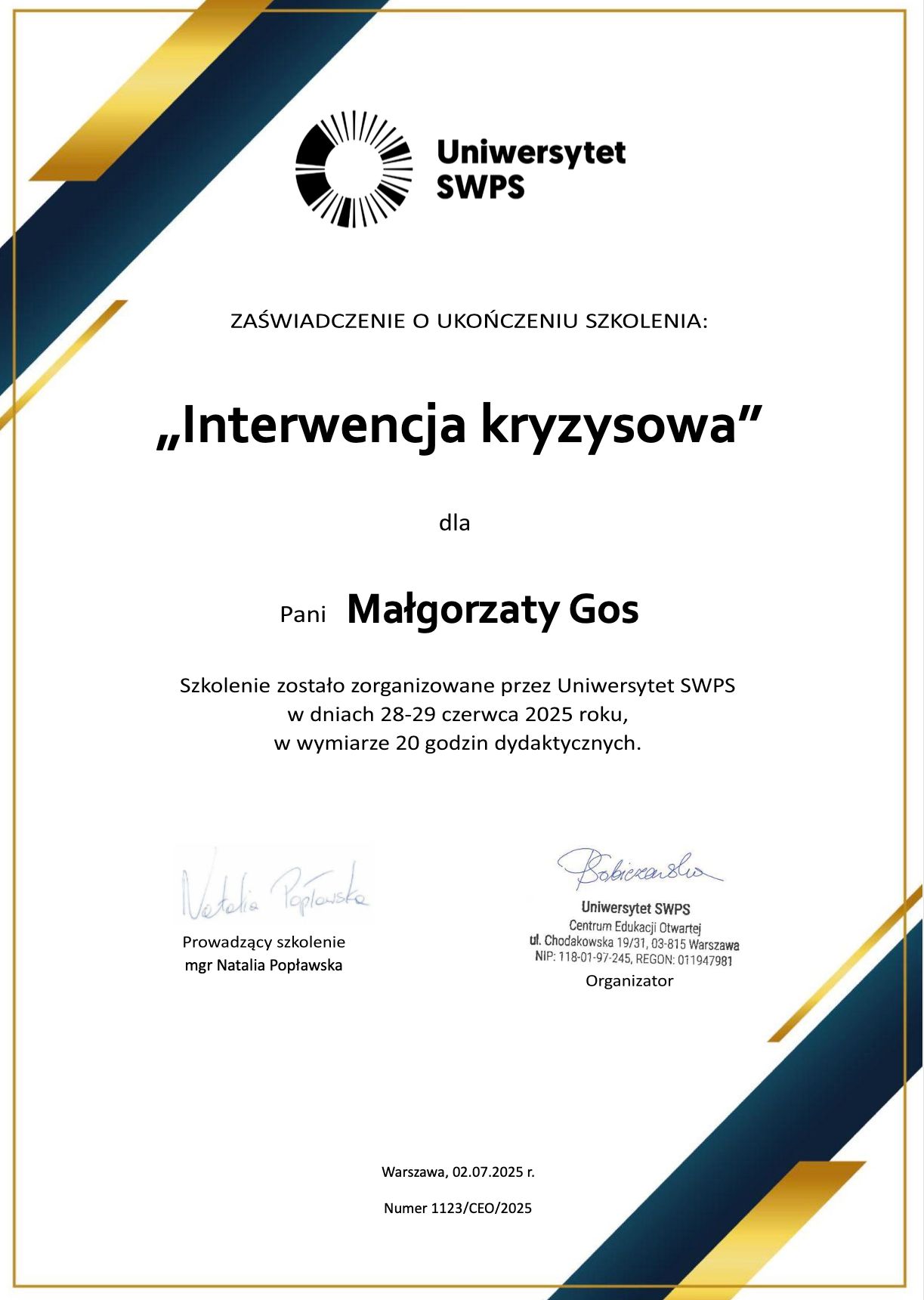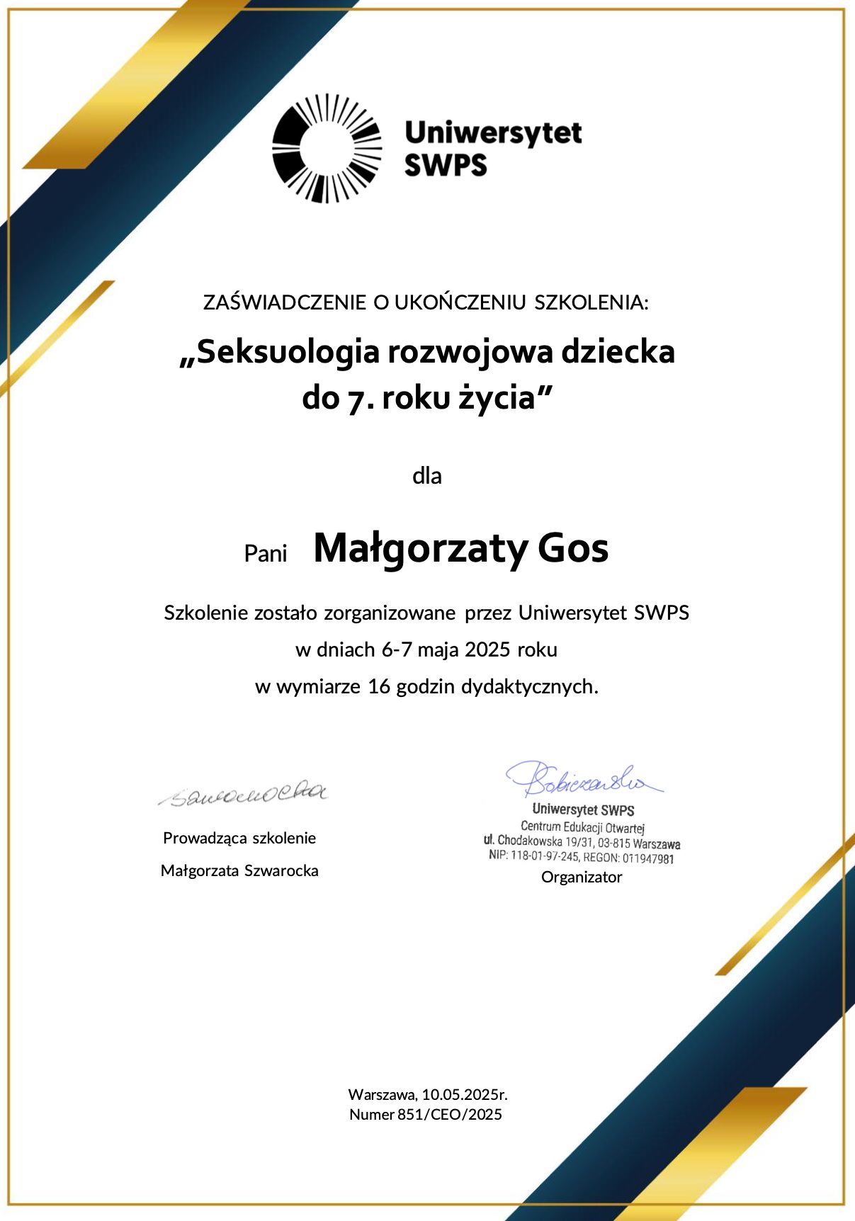 Pani Gosia pomogła nam uporać się z trudnościami naszego 7 latka, otworzyła oczy na różne kwestie. Dziękujemy