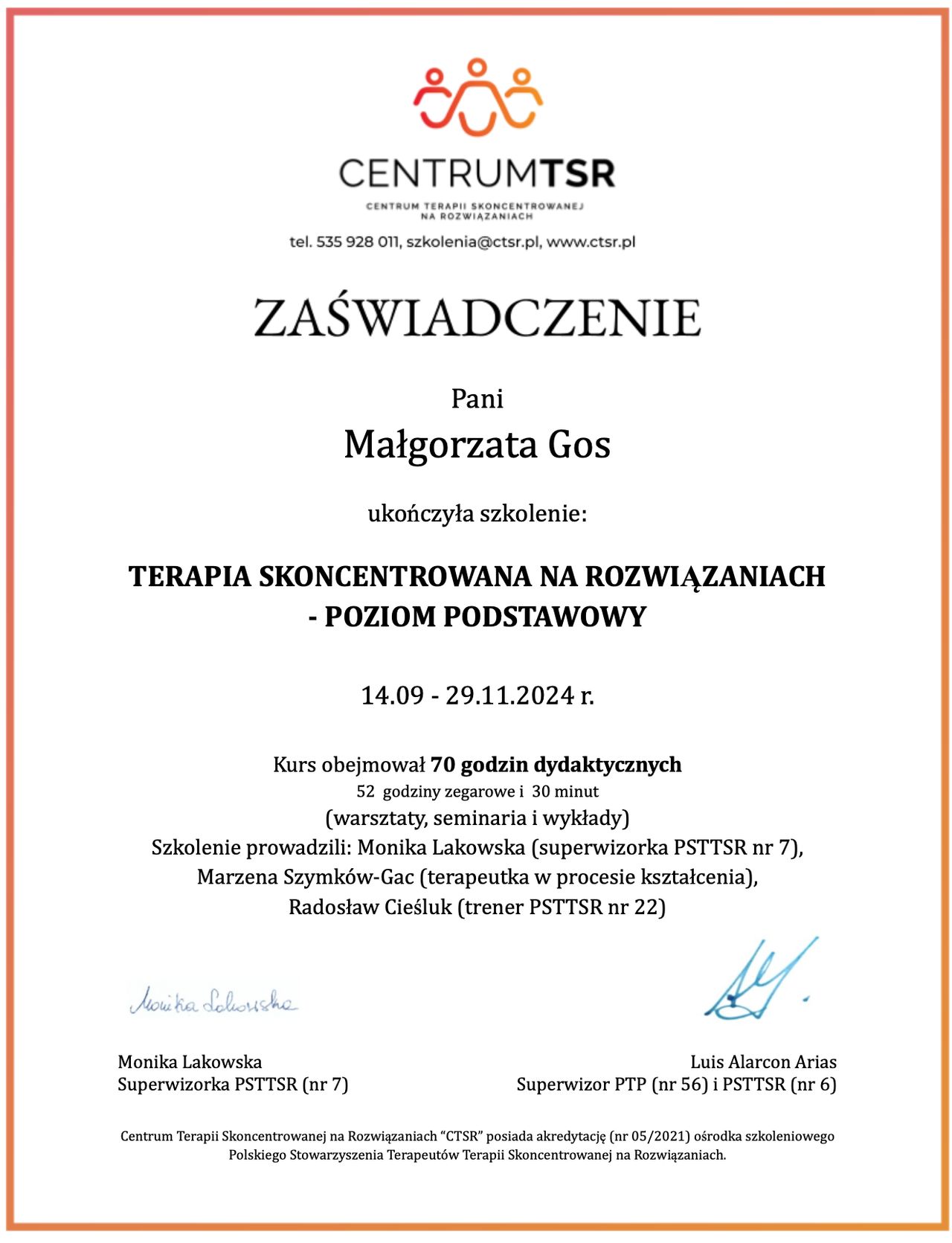 Gdzie Małgorzata Gos ma swój gabinet?Małgorzata Gos przyjmuje pod adresem: