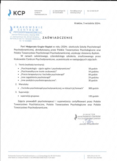 • Pracownia Psychologiczno- Psychoterapeutyczna Małgorzata Grygier- Stępień • Inny •