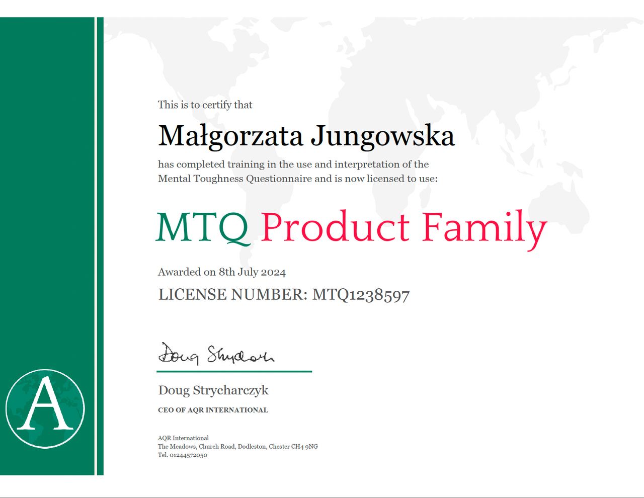 Należę do Sekcji Psychoterapii Polskiego Towarzystwa Psychologicznego (ID PTP: 19-0929), Polskiego Stowarzyszenia Terapeutów Terapii Skoncentrowanej na Rozwiązaniach (PSTTSR) i American Psychological Association (APA, ID: C2505260404). Mając na uwadze dobro Klienta oraz w trosce o jakość pracy kieruję się zasadami Kodeksu Etycznego Psychologa, co oznacza dbałość o bezpieczeństwo oraz uczciwość i poufność w relacji. Moja praca podlega superwizji (Katarzyna Waluchowska certyfikowana psychoterapeutka i superwizorka psychoterapii Polskiego Towarzystwa Psychologicznego).