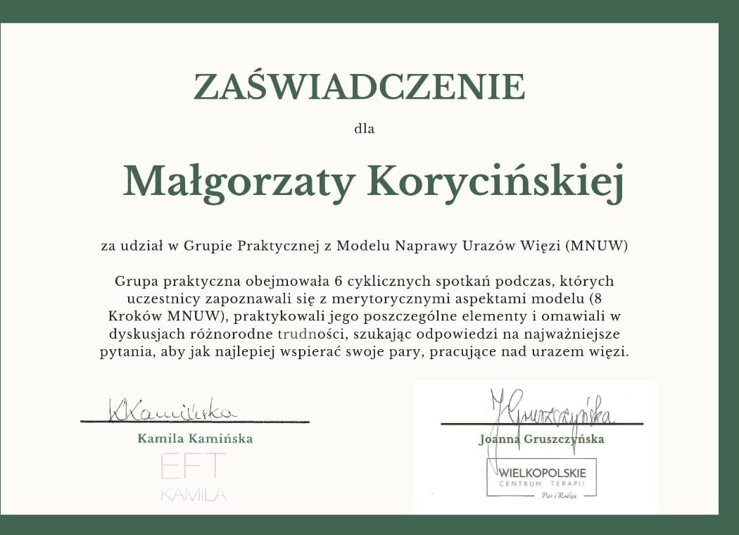 • Gabinet terapii par Małgorzata Korycińska • psychoterapia par i małżeństw •