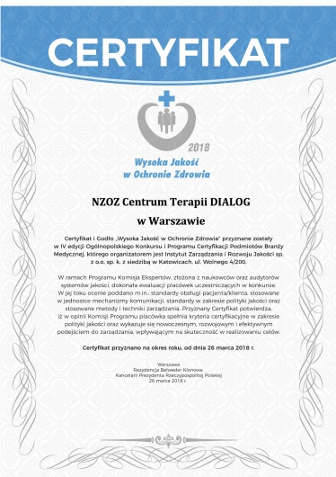 Obecnie konsultuję Pacjentów w NZOZ Centrum Terapii DIALOG - prywatnej wysokospecjalistycznej przychodni psychiatryczno-psychologicznej w Warszawie.
