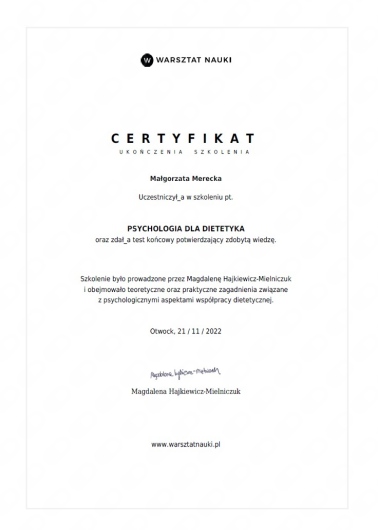 • Dietetyk Kliniczny Małgorzata Merecka • Konsultacja dietetyczna •