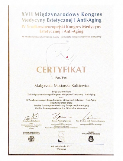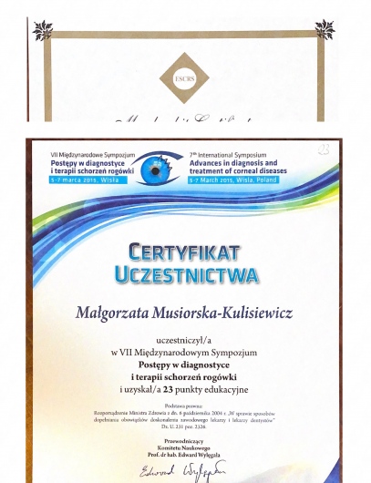 Jestem absolwentką Warszawskiego Uniwersytetu Medycznego z 2000 roku. Tytuł specjalisty chorób oczu uzyskałam w 2008 roku. Od początku pracy zawodowej związana jestem z okulistyką dziecięcą, zaburzeniami widzenia obuocznego, niedowidzeniem i zezem oraz chirurgią refrakcyjną. Przynależę do Światowego Towarzystwa Okulistyki Pediatrycznej i Zeza oraz Europejskiego Towarzystwa Chirurgii Refrakcyjnej i Zaćmy oraz Polskiego Towarzystwa Medycyny Estetycznej i Antyaging. Współpracuję ze Stowarzyszeniem Zespołu Williamsa w Polsce pełniąc funkcję konsultanta medycznego z zakresu okulistyki. Jestem współautorem podręcznika pt. „Kompendium Medycyny Elfów” pod redakcją prof. Jolanty Wierzby na temat tego zespołu genetycznego. Dzięki znajomości języka hiszpańskiego podnosiłam i wciąż podnoszę swoje kwalifikacje pod okiem najlepszych europejskich specjalistów z zakresu strabologii w Madrycie wyjeżdżając na cykliczne szkolenia.