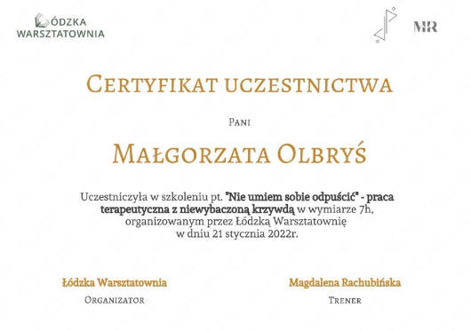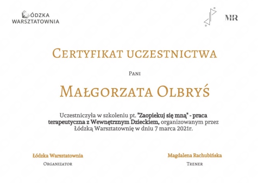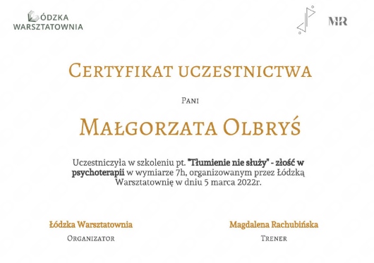 Przyszłam do Pani Małgorzaty z wieloma problemami, z poczuciem, że nigdy nie będę w stanie poradzić sobie z moim emocjami. U Pani Małgorzaty dostałam wszystko czego potrzebowałam. Pani Małgorzata rozumiała mnie doskonale. Efekty widziałam już po kilku pierwszych spotkaniach. Jestem jej niebywale wdzięczna za okazane wsparcie i wyrozumiałość