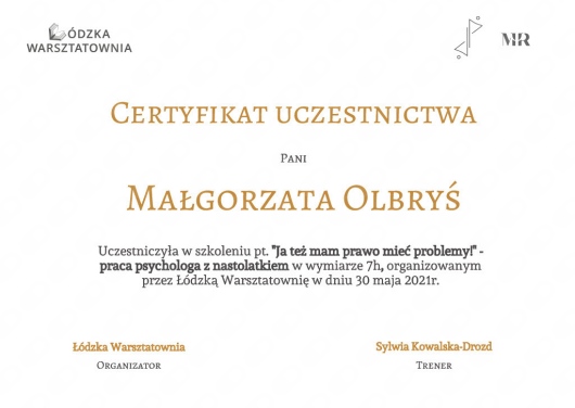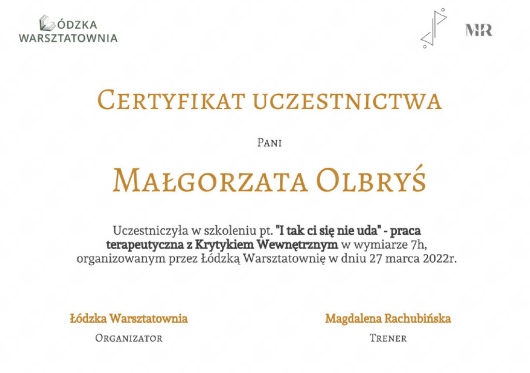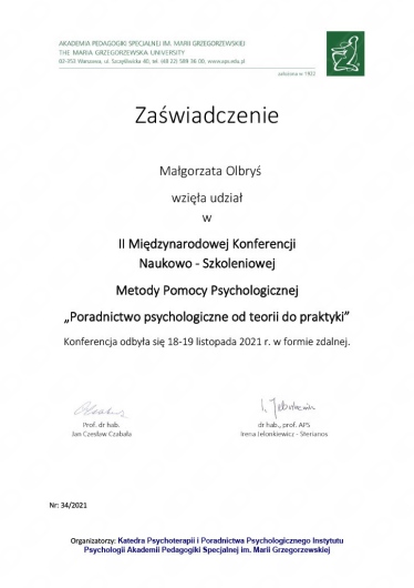 Pani Małgorzata zapewniła mi skuteczne wsparcie oraz udzieliła porad umożliwiających lepsze radzenie sobie z problemami.