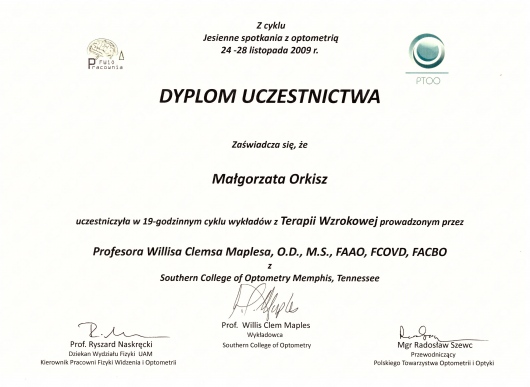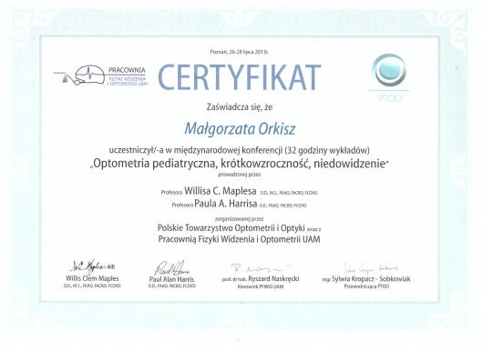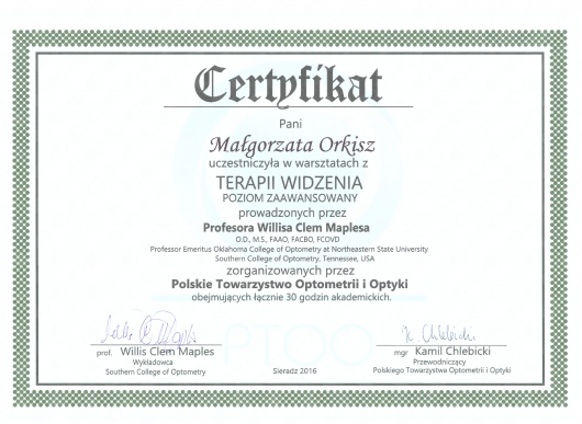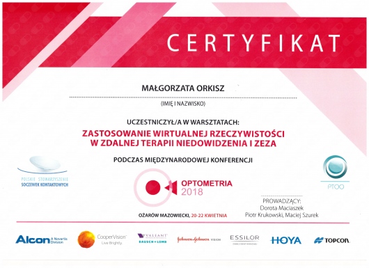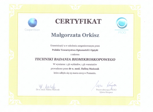 Jestem członkiem Polskiego Towarzystwa Optometrii i Optyki.