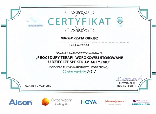 Zajmuję się terapią wzrokową metodą optometrii rozwojowej.