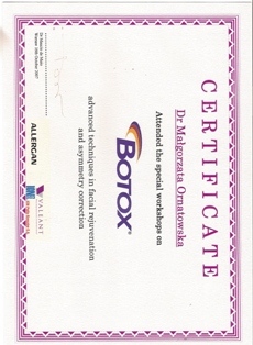 Ukończyłam dwie dwuletnie elitarne szkoły podyplomowe: jedna to Podyplomowa Szkoła Medycyny Estetycznej i AA Polskiego Towarzystwa Lekarskiego, która uprawnia mnie do używania tytułu ” lekarz medycyny estetycznej”, a druga to Międzynarodowe Centrum Kształcenia Medycyny AA Polskiego i Europejskiego Stowarzyszenia Dermatologów Estetycznych.