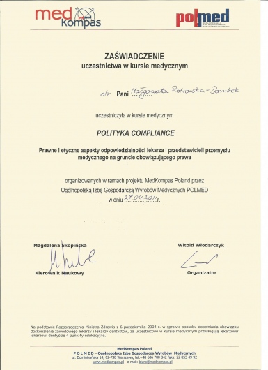 Polecam profesjonalizm i dużo empatii. Serdecznie pozdrawiam Panią Doktor