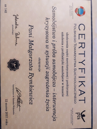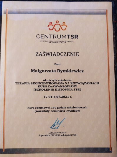 Stale podnoszę swoje kwalifikacje poprzez udział w szkoleniach oraz warsztatach.