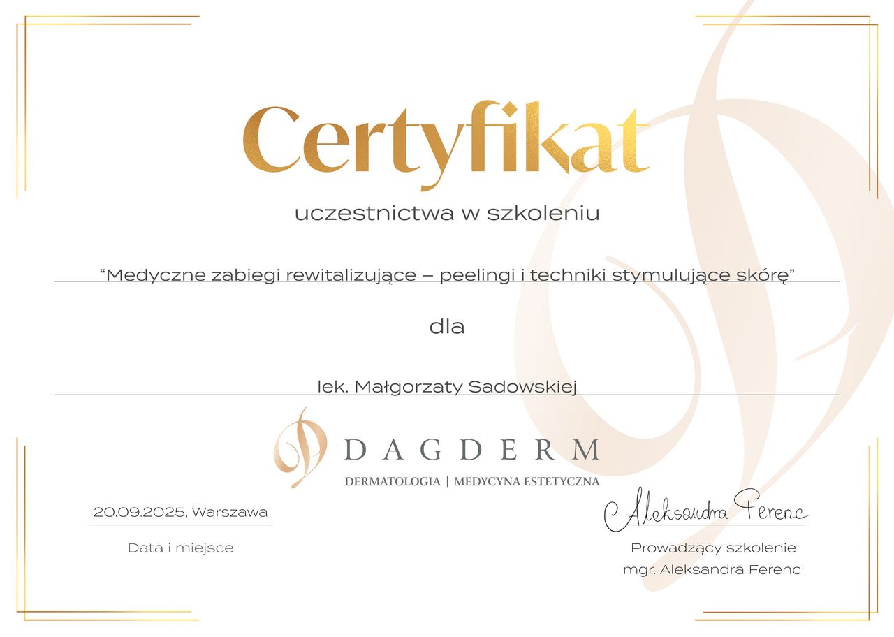 DAGDERM to specjalistyczne kliniki dermatologiczne z ponad 30-letnim doświadczeniem. Oferujemy pełną diagnostykę i leczenie wszelkich chorób skóry. Wykonujemy dermoskopię, wideodermoskopię, a także laserowe i chirurgiczne usuwanie zmian skórnych. Stosujemy wyłącznie sprawdzone i bezpieczne procedury z zakresu dermatologii estetycznej. Nasz zespół składa się z doświadczonych specjalistów, którzy pracują w oparciu o najnowszą wiedzę medyczną i technologie, zapewniając pacjentom najwyższy poziom opieki oraz bezpieczeństwo.