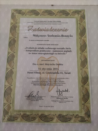 Administratorem danych osobowych jest ZnanyLekarz sp. z o.o. z siedzibą w Warszawie przy ul. Kolejowej 5/7. Informujemy, że po przekazaniu przez nas Twoich danych osobowych wybranemu przez Ciebie Profesjonaliście, staje się on również administratorem Twoich danych osobowych i przetwarza je w celach związanych ze świadczeniem usług medycznych lub innych podobnych.