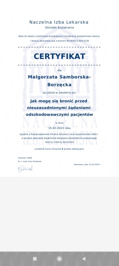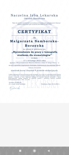 Pani Doktor Samborska-Borzęcka to prawdziwa profesjonalistka z ogromnym doświadczeniem i empatią. Trafiłem do niej z bólem zęba, który okazał się wymagać leczenia kanałowego. Szczerze mówiąc, byłem pełen obaw, na szczęście cały zabieg przebiegł bezboleśnie i w bardzo komfortowej atmosferze. Pani Doktor wszystko dokładnie wyjaśniła, wykazała się cierpliwością i spokojem, co bardzo mi pomogło. Widać, że zna się na swojej pracy i naprawdę dba o dobro pacjenta. Zdecydowanie polecam każdemu, kto szuka solidnego i życzliwego stomatologa.