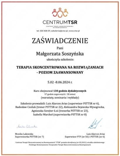 • konsultacje online • terapia krótkoterminowa TSR •
