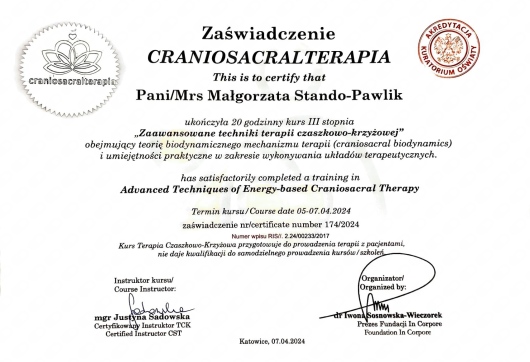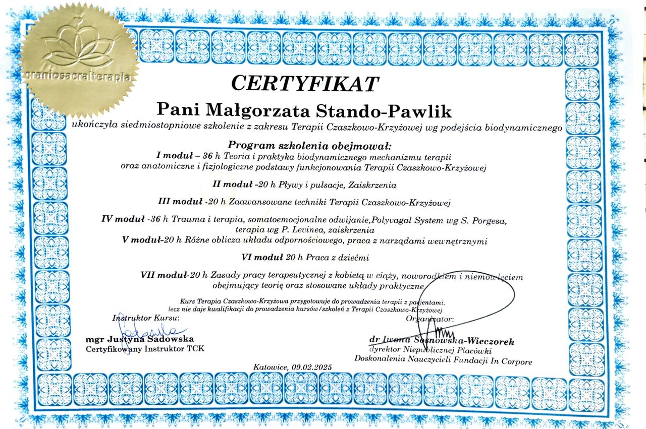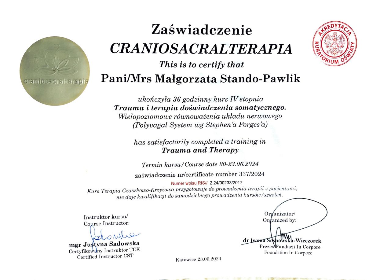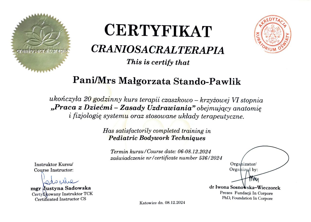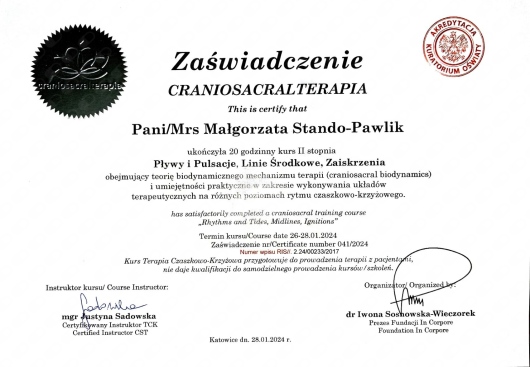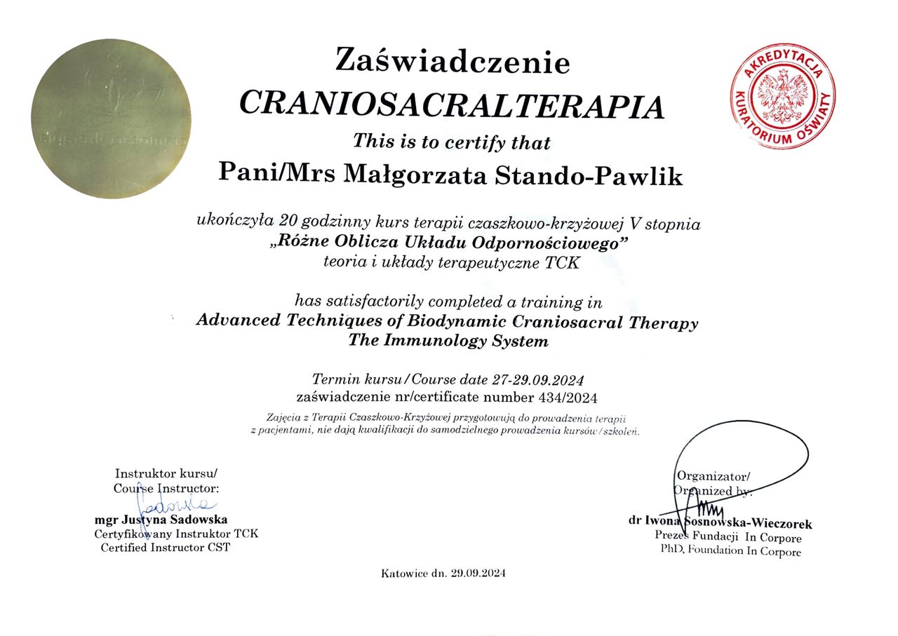 Jestem neurologopedą pediatrycznym, Terapeutą Ortodoncji Funkcjonalnej, Terapeutą Czaszkowo- Krzyżowym i terapeutą karmienia. Specjalizuję się w pracy z dziećmi z trudnościami w nabywaniu umiejętności jedzenia od pierwszych dni życia, w tym z wybiórczością pokarmową, zaburzeniami funkcji oddychania (np. oddychanie ustami), w obrębie twarzy i jamy ustnej, w rozwoju mowy i wymowy tj. wcześniaki, dziećmi po cesarskim cięciu, z podwyższonym lub obniżonym napięciem mięśniowym, po komplikacjach ciążowych i okołoporodowych.