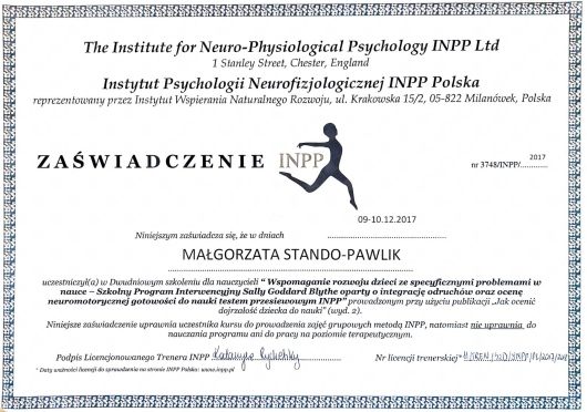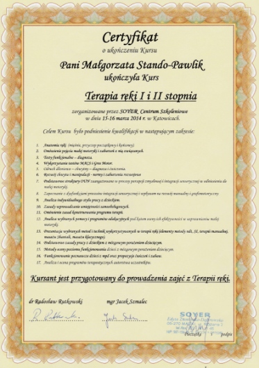 Najlepsze efekty uzyskuję dzięki całościowemu podejściu do zagadnień rozwoju dziecka i jego trudności. Najważniejszym elementem mojej pracy jest szczegółowa diagnoza. Takie podejście daje możliwość precyzyjnego ustalenia planu terapii i skrócenie jej czasu. Pozwala na szybką poprawę zaburzonych funkcji i poprawę jakości życia dziecka i całej rodziny.