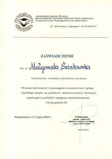 Pani Małgosia jest bardzo cierpliwa i ciepła. Ma świetne podejście do dzieci z trudnościami, naprawdę niespotykane, a chodziliśmy do różnych terapeutów zarówno neurologopedow jak i logopedów. Brak jest rozwlekania terapii na lata co ma miejsce przy metodzie Krakowskiej. Efekty widać bardzo szybko. Naprawdę polecam.