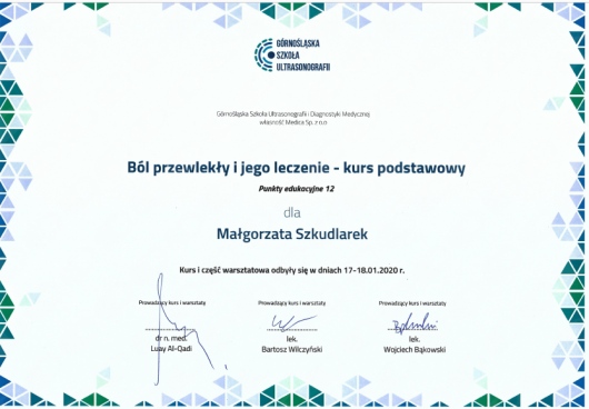 Jaki jest zakres porad oferowanych przez Małgorzata Szkudlarek?Małgorzata Szkudlarek to neurolog, ultrasonografista. Na podstawie swojego doświadczenia i wykształcenia Małgorzata Szkudlarek oferuje usługi takie jak: konsultacja neurologiczna, konsultacja epileptologiczna (leczenie padaczki) dorośli - kolejna wizyta, Konsultacja neurologiczna, EEG - elektroencefalografia, Leczenie migreny przy pomocy toksyny botulinowej, USG doppler tętnic szyjnych i kręgowych, Wizyta domowa, USG nerwów obwodowych, Konsultacja neurologiczna + USG Doppler tętnic szyjnych i kręgowych, USG kolana.