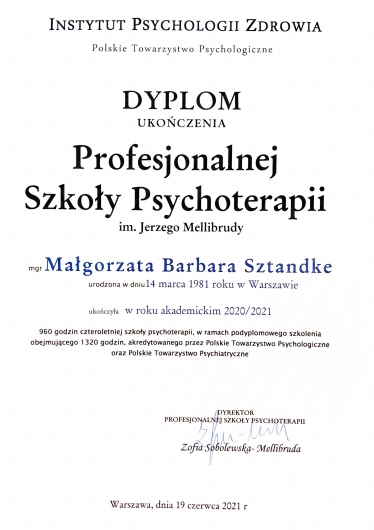 Posiadam akredytację (numer M12712) The Psychological Society of Ireland.