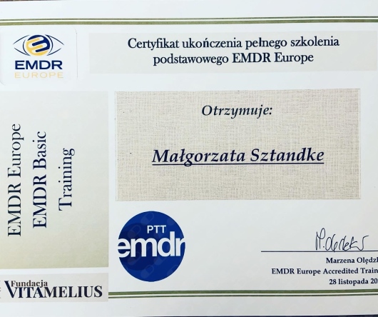 Jestem certyfikowanym terapeutą EMDR Europe.