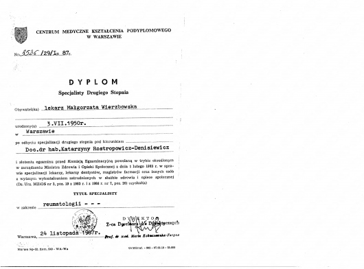Doktor Wierzbowska leczy mnie od dziecka, kiedys w szpitalu, dzis niestety nie ma takiej możliwości, ponieważ jest reumatologiem dziecięcym w szpitalu przy ul. Spartańskiej, lecz mimo opieki ze strony szpitala, dalej umawiam się na wizyty do Dr Wierzbowskiej. Jest bardzo dobrym specjalistą, ma ogromną wiedzę i w doskonały sposób umie ją wykorzystać i przekazać.