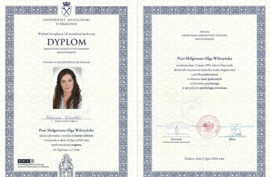 Ukończyłam 4-letnie szkolenie psychoterapeutyczne w instytucie akredytowanym przez Polskie Towarzystwo Psychologiczne. Pracuję zgodnie z kodeksem etyczno-zawodowym Polskiego Towarzystwa Psychologicznego oraz kodeksem etyki Polskiego Towarzystwa Psychoterapii Gestalt. Pracę poddaję regularnej superwizji.