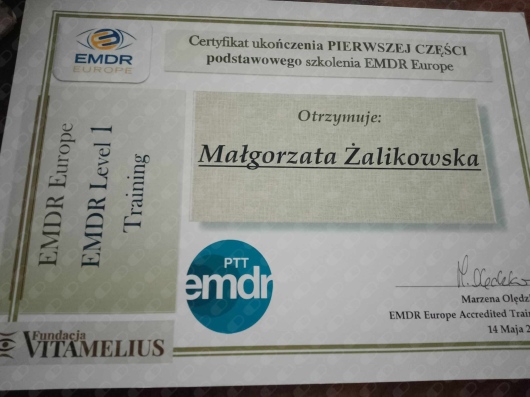 Psychoterapeutka poznawczo-behawioralna, Certyfikowana terapeutka uzależnień, Terapeutka EMDR