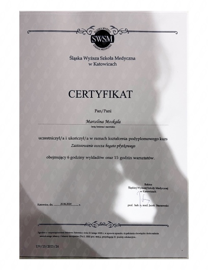Jaki jest zakres porad oferowanych przez Marcelina Moskała?Marcelina Moskała to stomatolog, lekarz wykonujący zabiegi medycyny estetycznej. Na podstawie swojego doświadczenia i wykształcenia Marcelina Moskała oferuje usługi takie jak: konsultacja protetyczna, Konsultacja stomatologiczna, leczenie nadpotliwości, konsultacja stomatologiczna (pierwsza wizyta), Botoks - linie poprzeczne czoła, Botoks - lwia zmarszczka, Botoks - nadpotliwość, Botoks - kurze łapki, Leczenie bruksizmu toksyną botulinową, uniesienie koniuszka nosa.