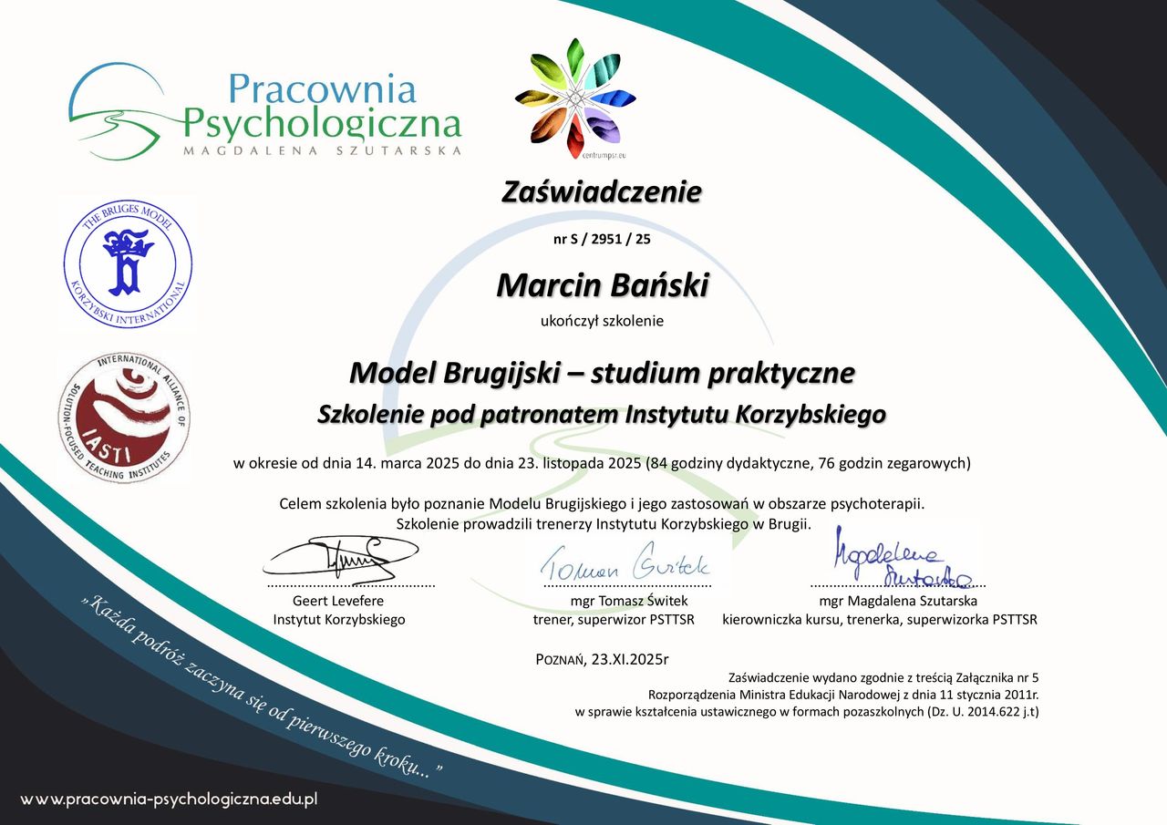 Informujemy iż z dniem 1.04.2026 zmianie ulegnie cennik konsultacji. Koszt spotkania będzie wynosił 200 PLN. Prosimy o uwzględnienie tej zmiany podejmując decyzję o współpracy