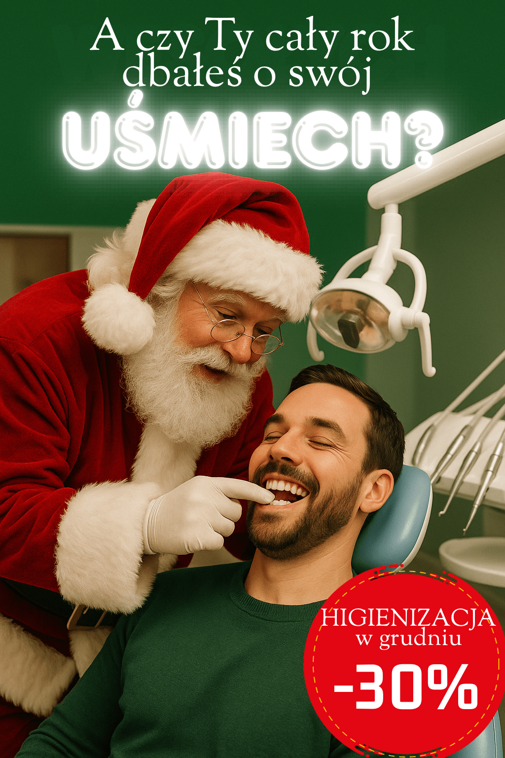 Zadbaj o olśniewający uśmiech przed świętami — zapisz się na higienizację zębów w naszej klinice! W grudniu czeka na Ciebie promocyjna cena jako świąteczny prezent od nas dla naszych Pacjentów.