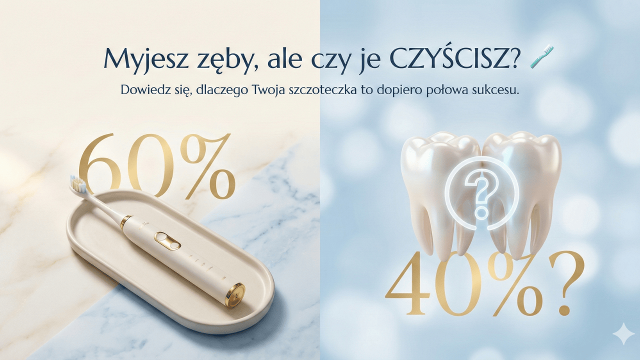 Nawet najlepsza szczoteczka (tak, ta soniczna za miliony monet też!) dociera tylko do około 60% powierzchni zębów. Pozostałe 40% to przestrzenie międzyzębowe – prawdziwe „VIP roomy” dla bakterii, resztek obiadu zjedzonego w biegu i osadu z porannej kawy.