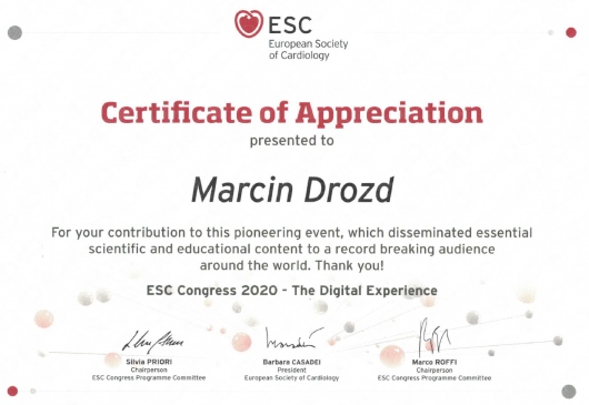 Rzadko lub prawie wcale spotykam się z takim profesjonalnym i empatycznym podejściem do pacjenta jak u pana doktora Marcina Drozda. To jest po prostu ewenement. W sposób bardzo przyjazny, rzeczowy i komunikatywny wytłumaczył mi jakie zagrożenia czyhają na mnie w czasie bardzo poważnej operacji chirurgicznej do której zostałam zakwalifikowana i jakie mogą być powikłania pooperacyjne w moim wieku i przy obecnym stanie zdrowia. Wizyta ta uświadomiła mi bardzo wysoki poziom zagrożenia mojego życia i zaleciła bezwzględną poprawę pewnych bardzo ważnych dla mojego organizmu parametrów życiowych przed tą planowaną operacją o ile chcę ją w ogóle przeżyć. Być może doktor uratował mi tym samym życie i za to jestem mu dozgonnie wdzięczna. A miała to być według mojego założenia krótka przedoperacyjna konsultacja kardiologiczna a zmieniła wszystko o 180 stopni.