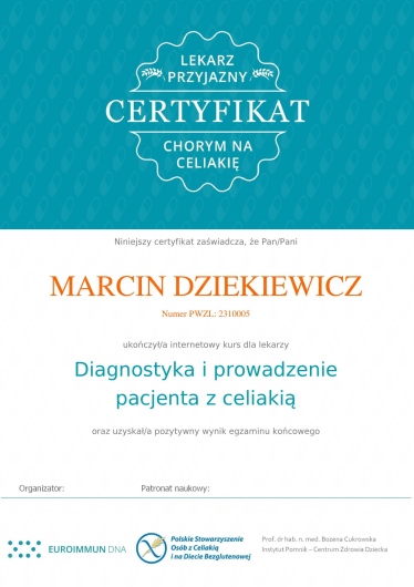 Pan Doktor stanął na naszej drodze i dał nadzieję na to, że nasze dziecko jest zdrowe, gdy byliśmy na skraju załamania. Uchronił mojego synka przed niepotrzebną biopsją wątroby. Kultura osobista i klasa jaką Pan Doktor prezentuje jest godna podziwu, wręcz niespotykana w tym zawodzie. Ogromna wiedza i niezawodna intuicja, której nie da się wyuczyć, to trzeba mieć. Jestem dozgonnie wdzięczna za to, że ochronił Pan mój największy skarb. Z całego serca polecam.