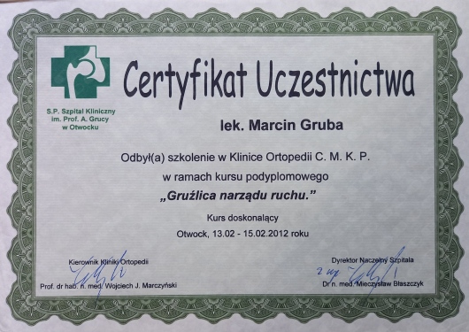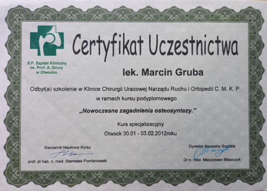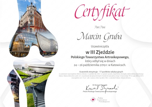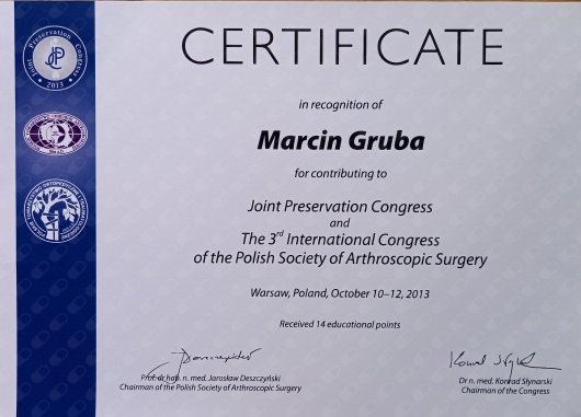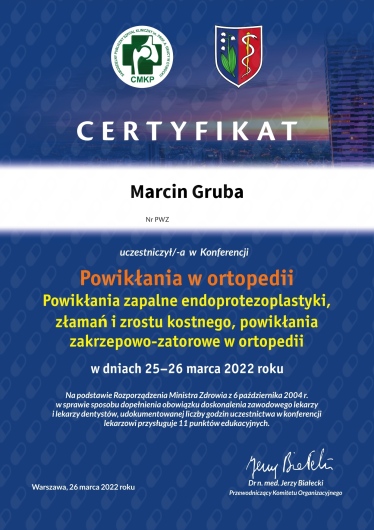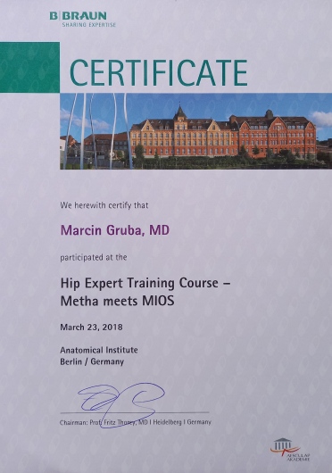 W swojej praktyce stosuję operacyjne i zachowawcze metody leczenia w obrębie stawu kolanowego, biodrowego i skokowego.